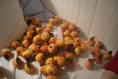 Die Ernte ist reichlich ausgefallen. (Tischdekoration für eine Hochzeit. 60 Filzäpfel - uff.)