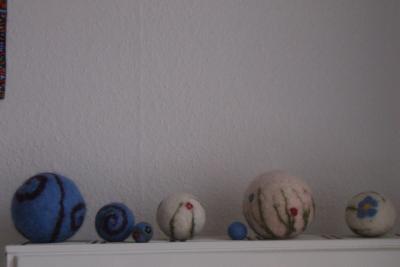 Diese Bälle haben Schüler der 5. Klasse gemacht, alles Filzanfänger, konnten sich aber alle fürs Runde begeistern.