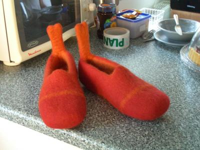 Heute sind die Filzblumen zu sehen, die momentan meine Spezialität sind (die Sachen sind alle noch von Weihnachten, aber nich weitersagen). Ich weiß ja, dass mein Weblog über ein Jahr lang den Hauptpreis für Langeweile hätte gewinnen können. Aber der ging einfach nicht, der hat mich nicht mehr reingelassen, das olle Ding. Also, auf ein neues. Fehlt jetzt bloß noch die Zeit, um viele neue Dinge filzen zu können. Ich bitte um Geduld.