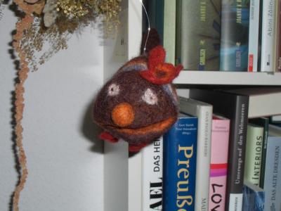 Das ist übrigens noch ein Filzfisch, ich weiß den Namen noch, "Fridolin, der Clownsfisch" und er hängt bei meinem Patenkind im Fenster. Der ist wirklich pflegeleicht, braucht nie Futter, usw.